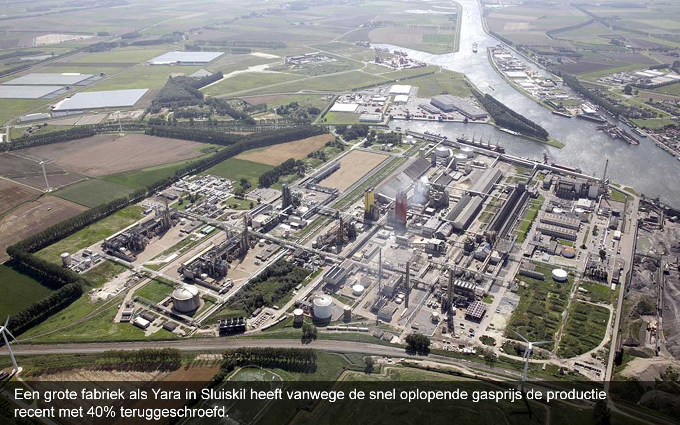 De productie van ammoniak, de basisgrondstof voor stikstofkunstmest, is een proces dat erg veel energie kost en waarvan aardgas een groot aandeel in de kostprijs vormt. Een grote fabriek als Yara in Sluiskil heeft vanwege de snel oplopende gasprijs de productie recent met 40% teruggeschroefd. Ook andere producenten in Noordwest-Europa zetten zulke stappen. Wouter van Vliet, sectormanager Tuinbouw en Akkerbouw bij Van Iperen uit Westmaas geeft aan dat stikstofmeststoffen zoals kalksalpeter, salpeterzuur, ammoniumnitraat, ureum en magnesiumnitraat in het vierde kwartaal voortdurend in prijs zullen stijgen.