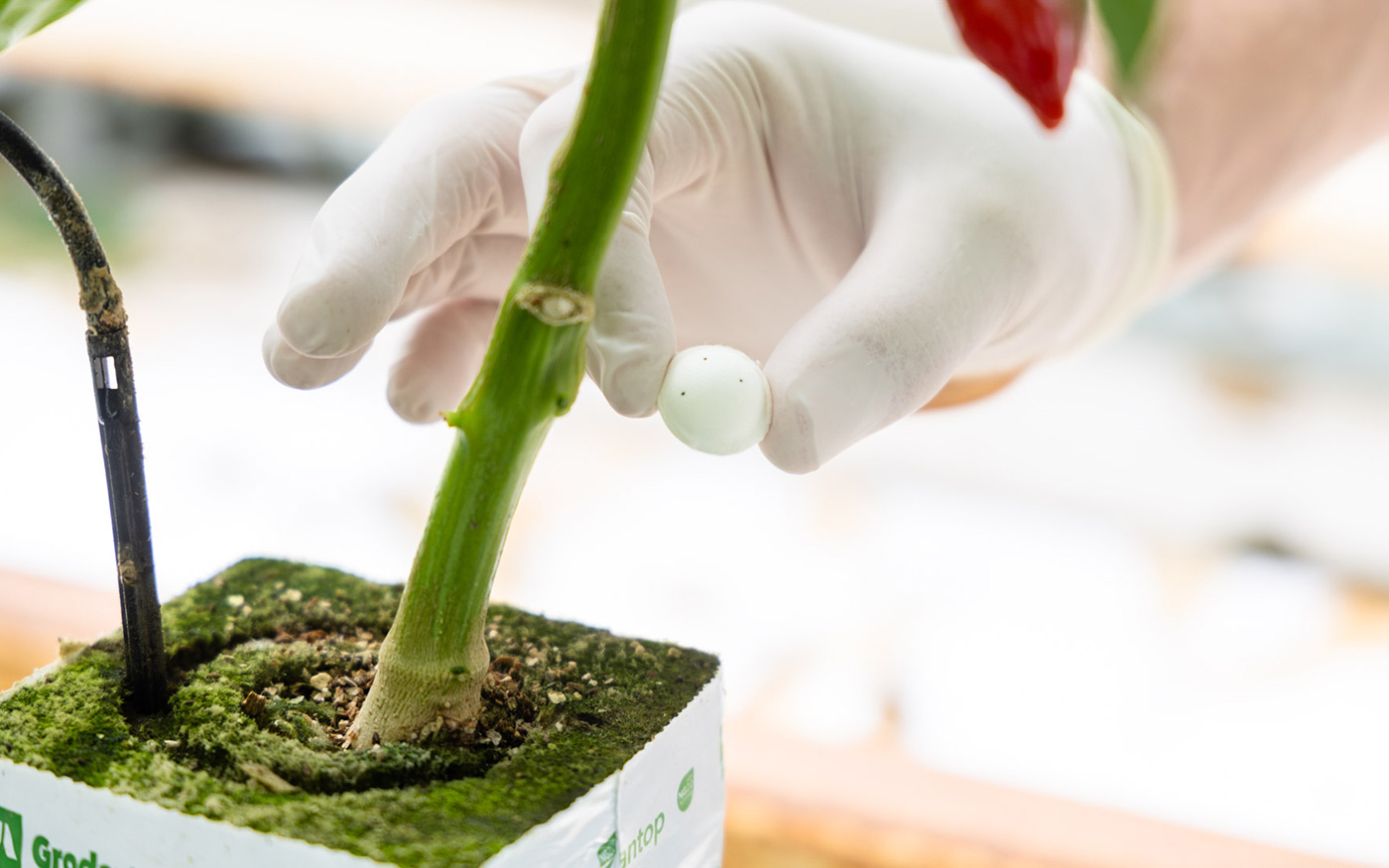 “In de gerberateelt was het nog niet gelukt om een goede parasitering van motteneieren te realiseren”, vertelt Kees Kouwenhoven van leverancier Royal Brinkman. “De ervaringen met los strooimateriaal waren ronduit teleurstellend. Daardoor haakten telers af en bleven rupsen een groot knelpunt in deze teelt. Omdat de behoefte aan een biologische oplossing breed wordt gedeeld, zijn we opnieuw in gesprek gegaan met Agrobío, onze Spaanse partner voor biologische bestrijding. Dat heeft geresulteerd in twee nieuwe verdeelsystemen voor Trichogramma.”