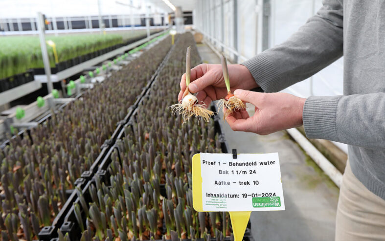 “We zagen dat tulpen die met behandeld water werden gebroeid, sterker waren en een beter ontwikkeld wortelgestel hadden”, vertelt Mario van den Bree van Fundamental Systems. “Dat heeft een gunstig effect op de teelt en gezondheid van gewas.”