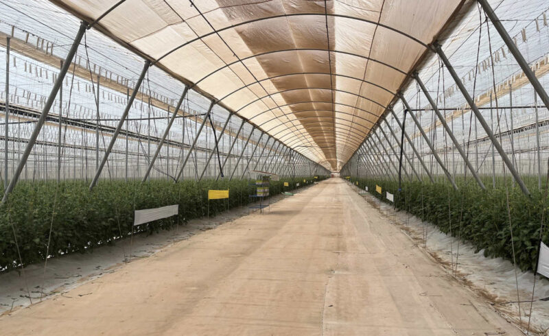 De tuinbouwproductie in Marokko vindt met name plaats in foliekassen, zogeheten Canarische kassen. “Dit zijn lowtech-kassen, met een plastic dak en netten aan de zijkant. Er zit meestal geen enkele techniek in, ook geen klimaatcomputer”, legt Weijns uit. “Deze Canarische kassen zijn flink goedkoper dan glazen kassen én lenen zich perfect voor het klimaat ter plekke. Je hebt daar zoveel zoninstraling dat het geen probleem vormt dat plastic een lagere lichttransmissie heeft dan glas. Daarbij zijn de foliekassen goed bestand tegen de harde windstoten die regelmatig voorkomen in het gebied rondom Agadir.”