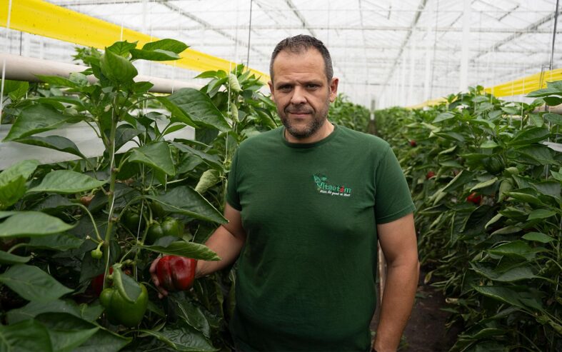 Met 2 ha glas, met verschillende rassen tomaten, drie soorten paprika’s en twee soorten komkommers behoort Vitaetom uit Zwijndrecht, van de familie Van Hauteghem, tot de grootste biologische teeltbedrijven van Vlaanderen. Daarnaast telen ze op 6.000 m² courgettes in de vollegrond.