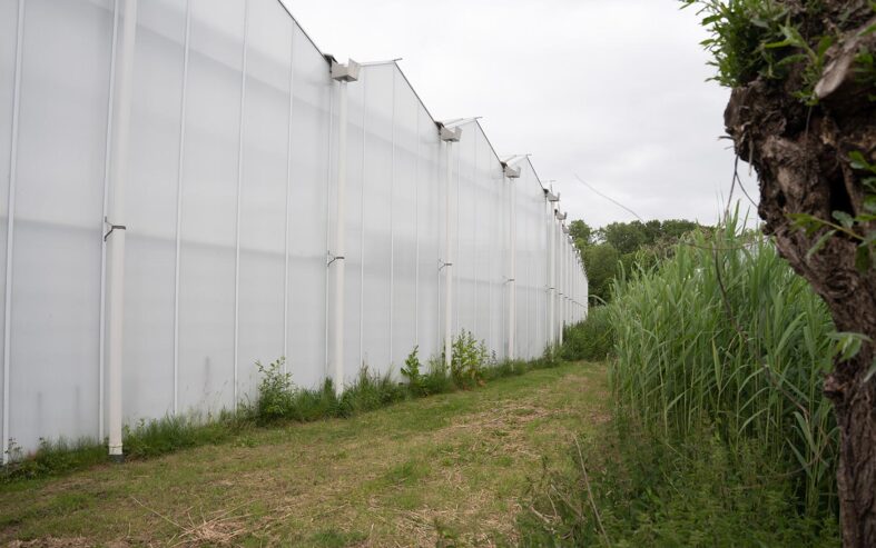 De nieuwe kas is voorzien van een dubbel energiescherm. Opvallend zijn ook de zijwand van de kas die bestaat uit polycarbonaat, als alternatief voor een glazen wand met een energiescherm. Voor de noordkant van de kas kozen de telers voor een opaalkleurig polycarbonaat. “Als de instraling in het voorjaar vanuit het zuiden komt, hebben we door de reflectie extra licht”, verklaart de teler die de overstap naar biologische teelt “de beste keuze uit zijn carrière noemt.”