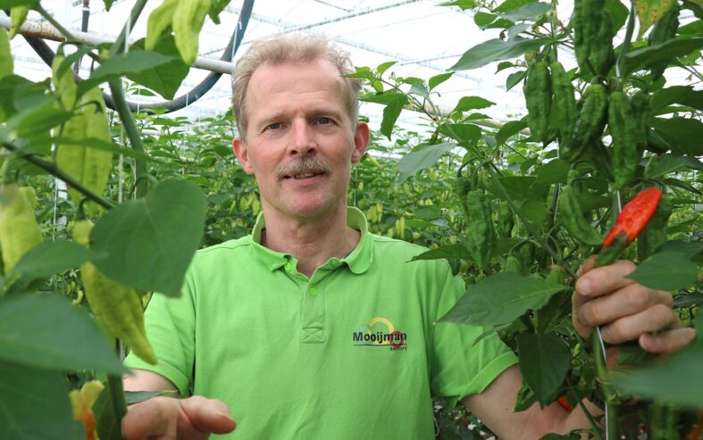De teler hoeft niet lang na te denken bij de vraag welke uitdagingen hij ziet voor de toekomst. “Het liefst zou ik jaarrond pepers te telen. “Nu gaan afnemers van speciale pepers in de Verenigde Staten en Canada ‘s winters naar Mexico en Costa Rica of telen ze in eigen land. Voor een jaarrondteelt heb je lampen nodig. Ik kijk daarbij naar stuurbare LED-lampen met verschillende kleurschema’s.”
