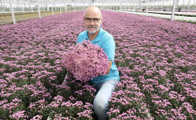 Toch is het bedrijf ook dan eigenlijk te klein om in de toekomst rendabel troschrysanten te kunnen telen. Daarom stapt de teler in 2008 over op de teelt van santini’s. “Het is een teelt die bijna perfect is te plannen met een groeicyclus van acht weken, een jaar rond.” Als hij in 2010 de kans krijgt om, als tweede Nederlandse teler, Madiba chrysanten te gaan telen, grijpt hij die. “Met deze bloemen kunnen wij op jaarbasis 640 takken per vierkante meter halen. Dat is veel meer dan met bijvoorbeeld de troschrysant waar je met 280 takken moet rekenen.”